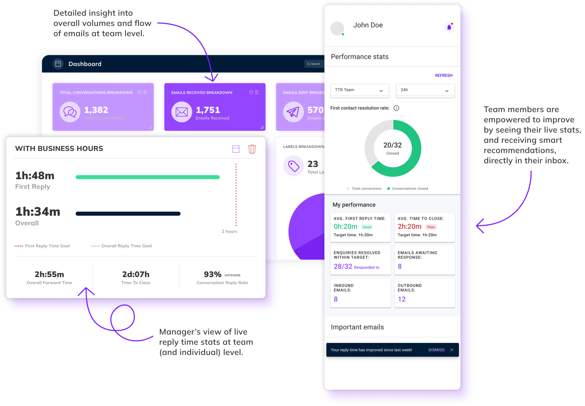 Get live inbox alerts and reply quickly to customer emails with timetoreply