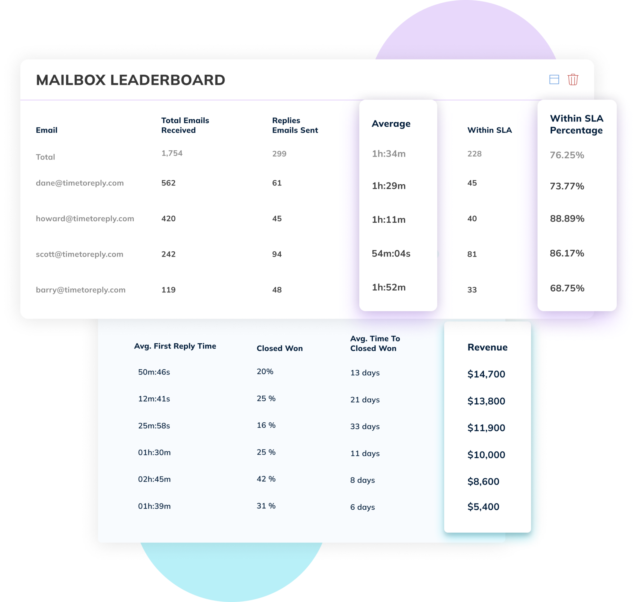 For instance, being a dedicated email analytics tool, timetoreply provides features for measuring and improving email reply performance. Since it integrates directly, it offers analytics for Outlook and Gmail without changing your team’s workflow.