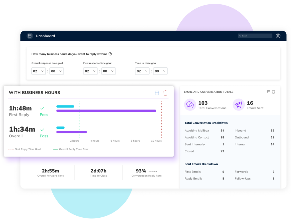 Unlike traditional email clients like Microsoft Outlook or Gmail with basic analytics, dedicated email analytics tools can give businesses visibility into individual and team-wide performance. It helps track email response time, identify response bottlenecks, and ensure timely, professional communication across all customer emails.